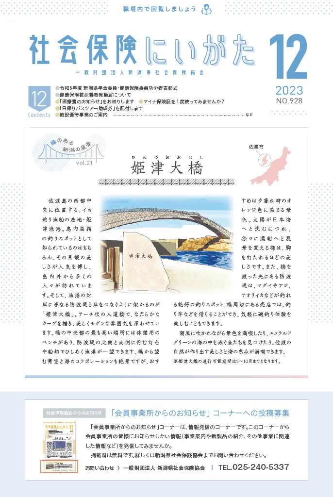 社会保険にいがたのバックナンバーをご覧いただけます。 日本年金機構や協会けんぽからのお知らせ、イベントや講習会などの情報をお届けします。