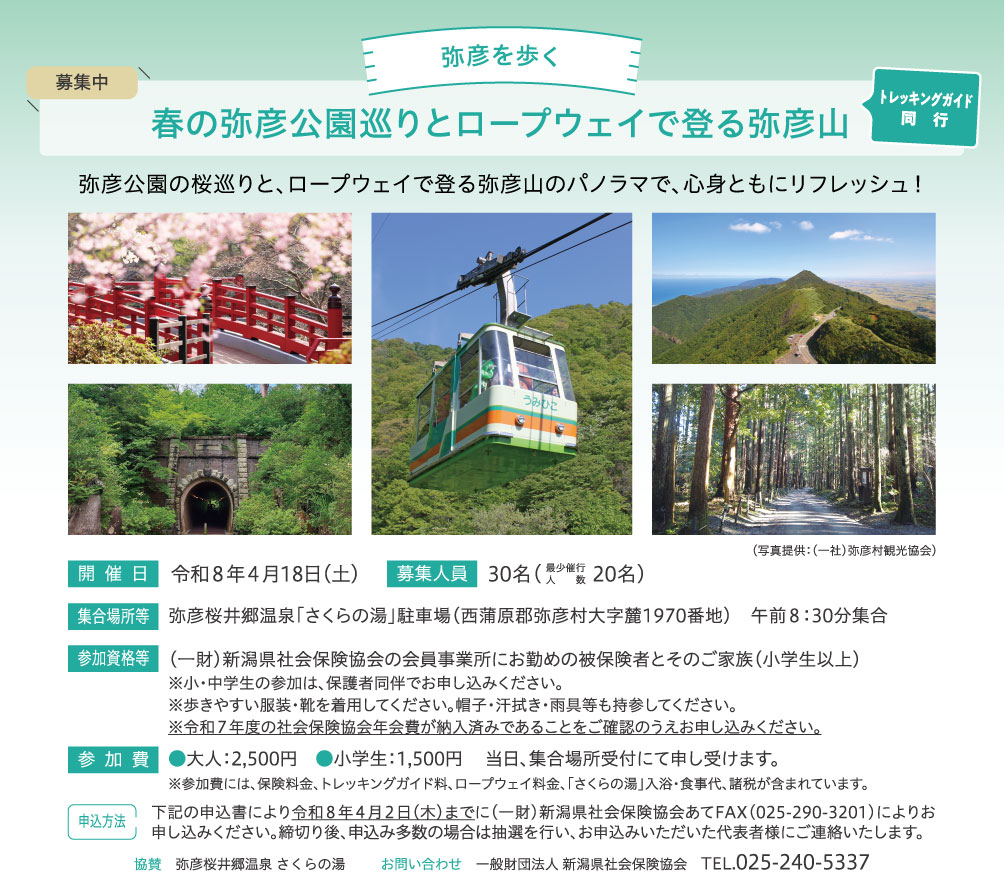 「春の弥彦公園巡りとロープウェイで登る弥彦山」開催のご案内